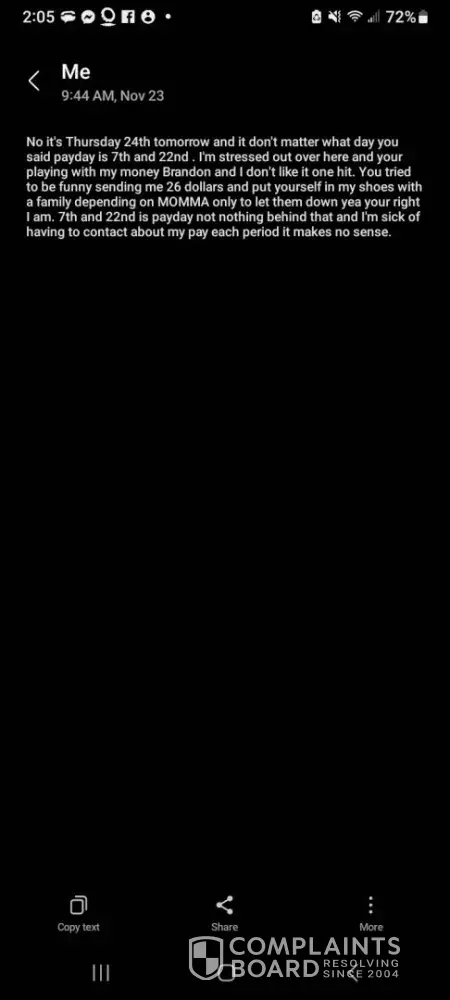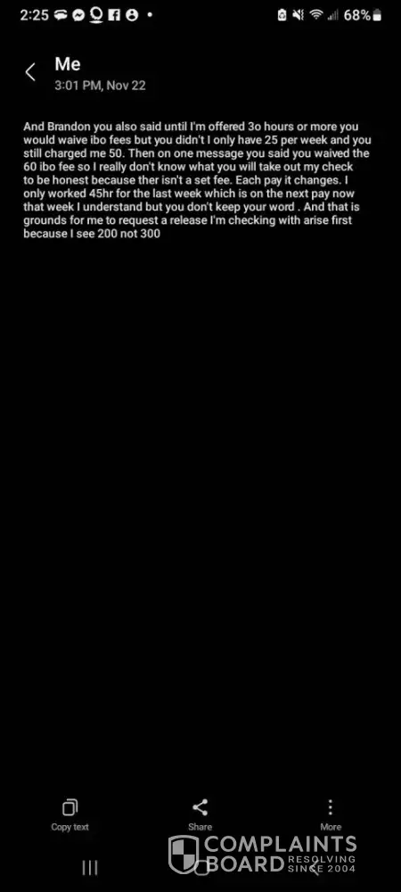 Read full complaintMcH Management LLC - IBO - holding my check will not release me