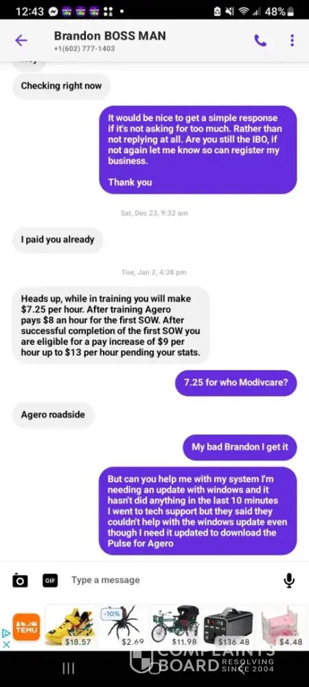 On January 20, 2024 while studying with others in a session on Discord we were discussing the pay and incentives that were offered in the opportunity that I am attending class for. One of my classmates IBO gave their contractors a copy of the opportunity. On the opportunity it shows the pay while in certification and after. My IBO has being lying to me...
