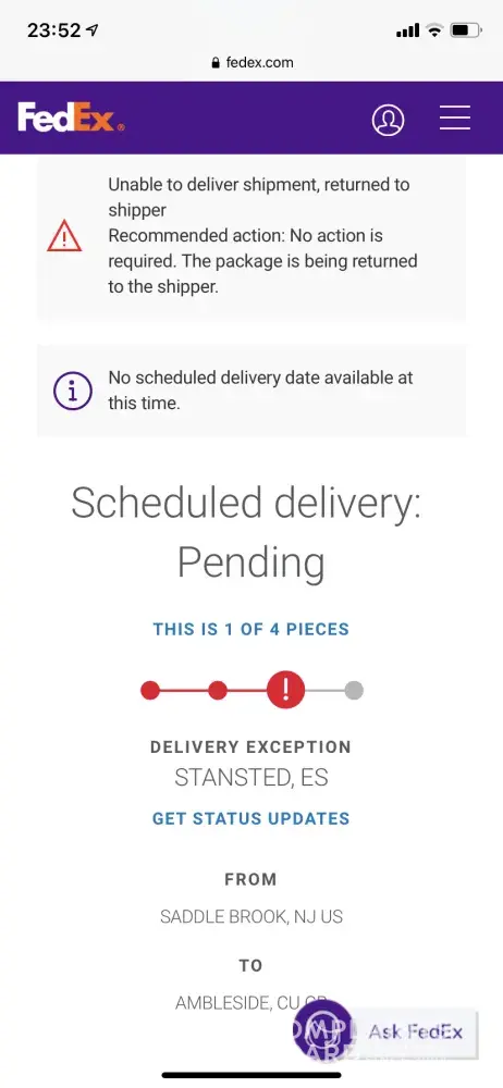 I placed the order december 2nd. The tracking id given was showing as package delivered after 4 weeks. I sent an email as I had not received the package and was told it had be delivered to the international shippers. I waited another month and then after a few emails got another tracking number that showed the package delayed in customs. The package then show as return to shipper from customs at which point I asked for a refund, I was told that they have not yet received the package back. It has now been over 3 months and I have stopped getting responses to my emails.