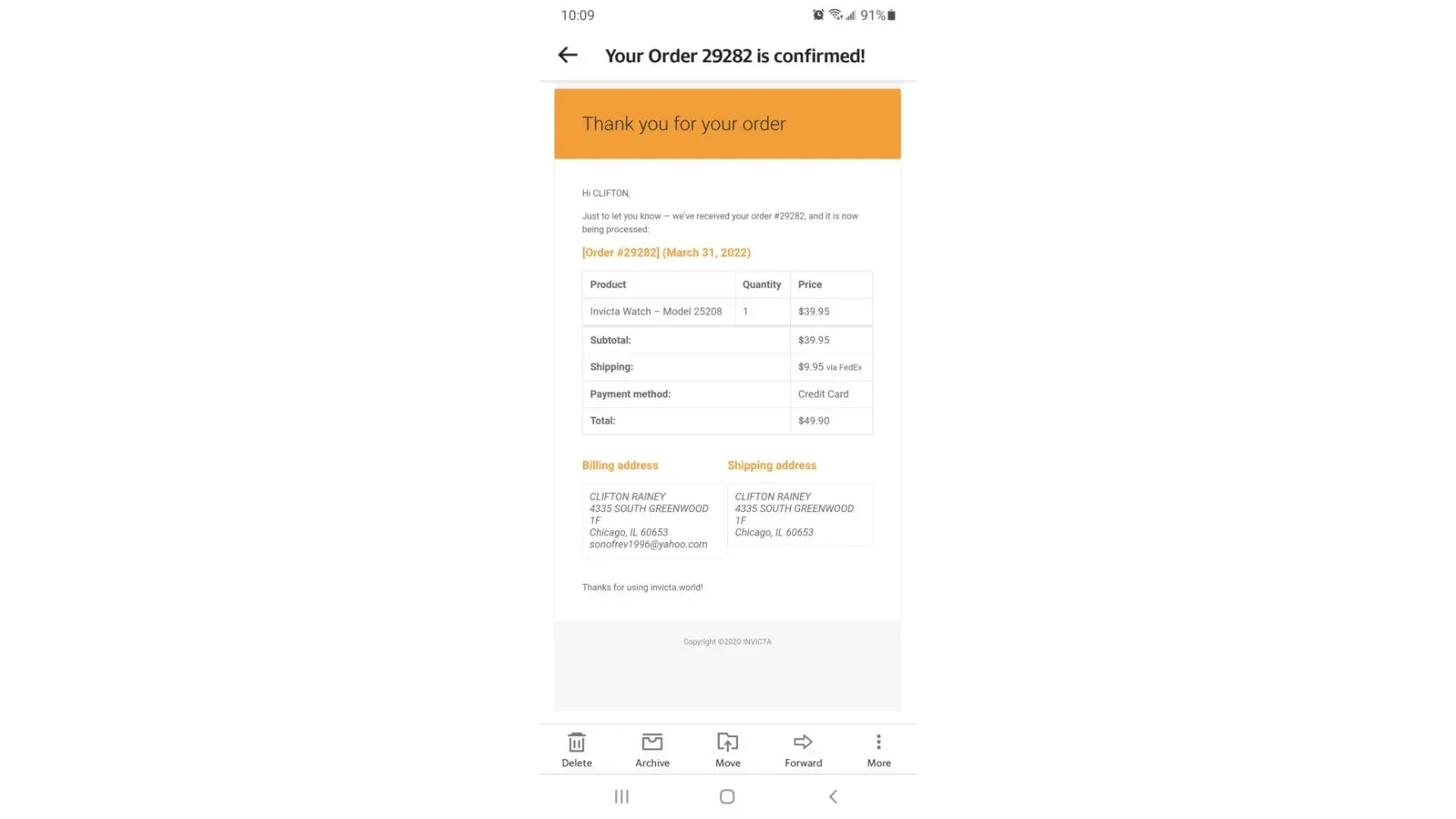 I placed an order for two watches in November, they arrived in the mail on different dates, one on December 4 and the other on December 6. The email is sent back to invicta because it does not have enough address. I have tried to contact you and sent emails and calls and have not received a response. I need to know solution for this problem. Email me [protected]@icloud.com