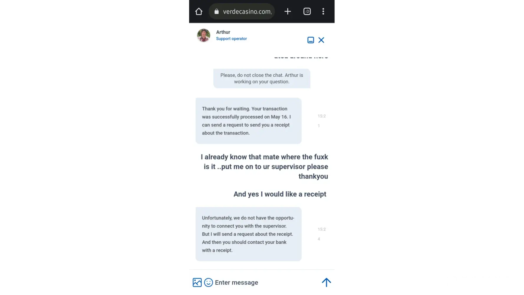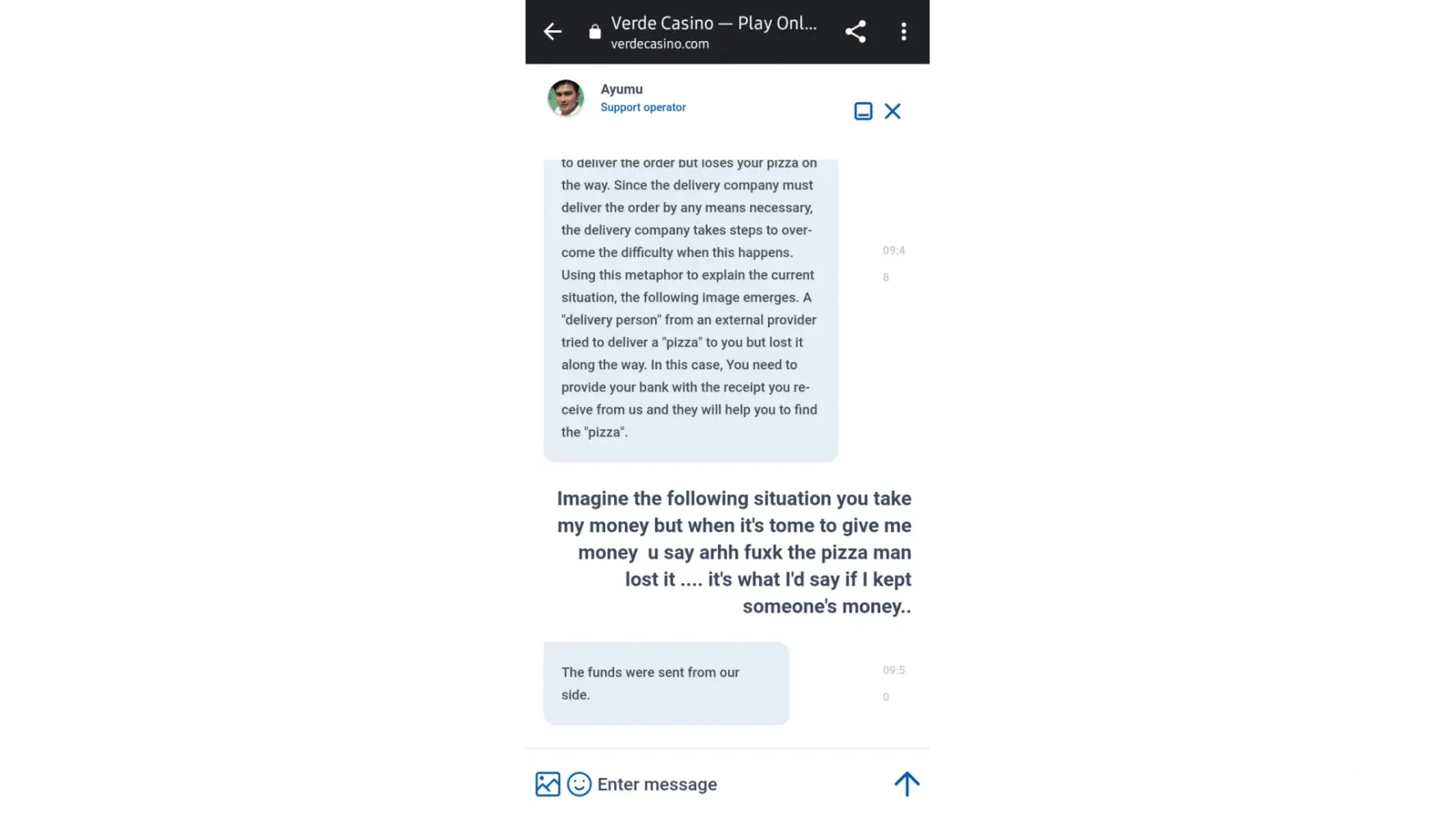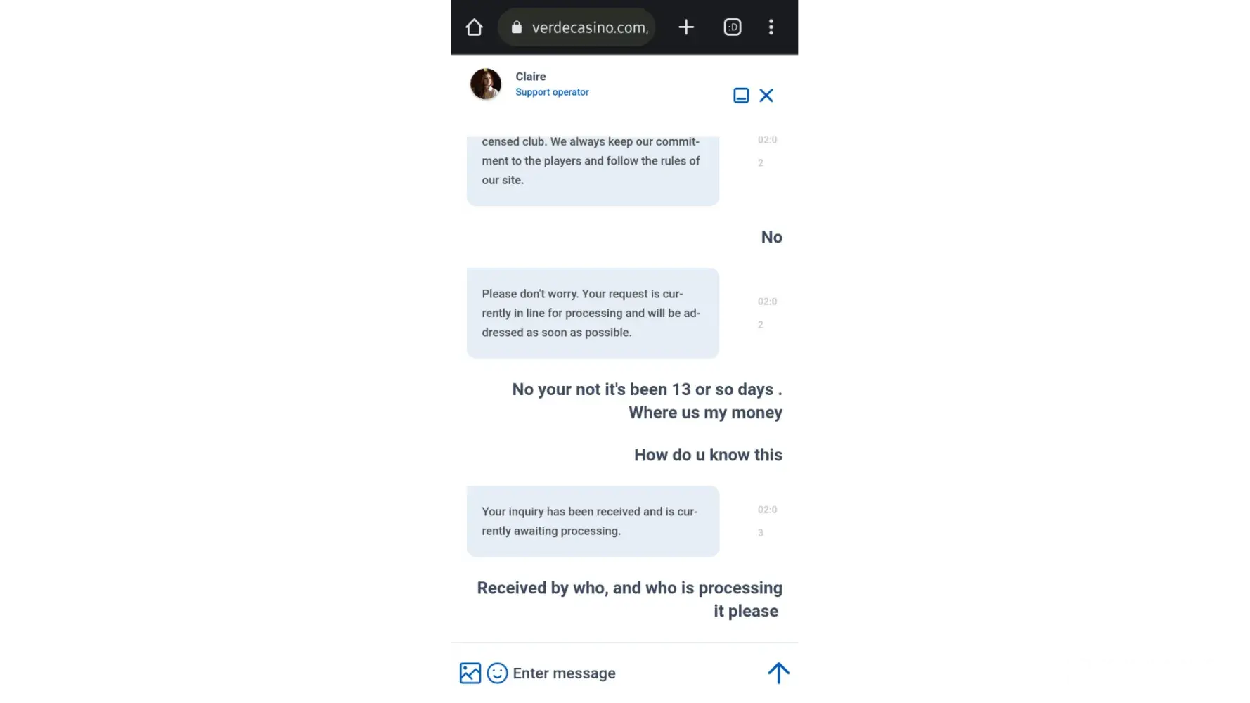 Then claimed they dont have ther details yet other times they have been contacted and I need to wait... They say they can see my complaint has been forwarded to financial department then say they dont have any contact details for them?*must still be using pigeons to communicate) so how was it forwarded and what is it they mean "they can see its been forwarded if not a email... Also that its not ther financial department they have so many different providers that they dont know what's happend whos got it or where the $ is. Once or twice the reason to why I havent been paid was that there aren certain difficulties and situations that can hold my payments up but cant tell me what they are.. What my 13 +days (and counting) of screen[censored]s really expose is a very surface level very generic smooth over umbrella type"answer to all concerns a "dont worry we on the case typed answer however when question the cannot prove any facts or details on how they are helping or who is assisting them... They cannot provide me with a order number statement number invoice or anything regarding my withdrawal and bank transfer.. Ive even asked if they could send back to me my details I gave them to check for any typos I may have given but cant even do that. (again sorry to state the obvious but if they dont have my bank details how are they going to deposit.
