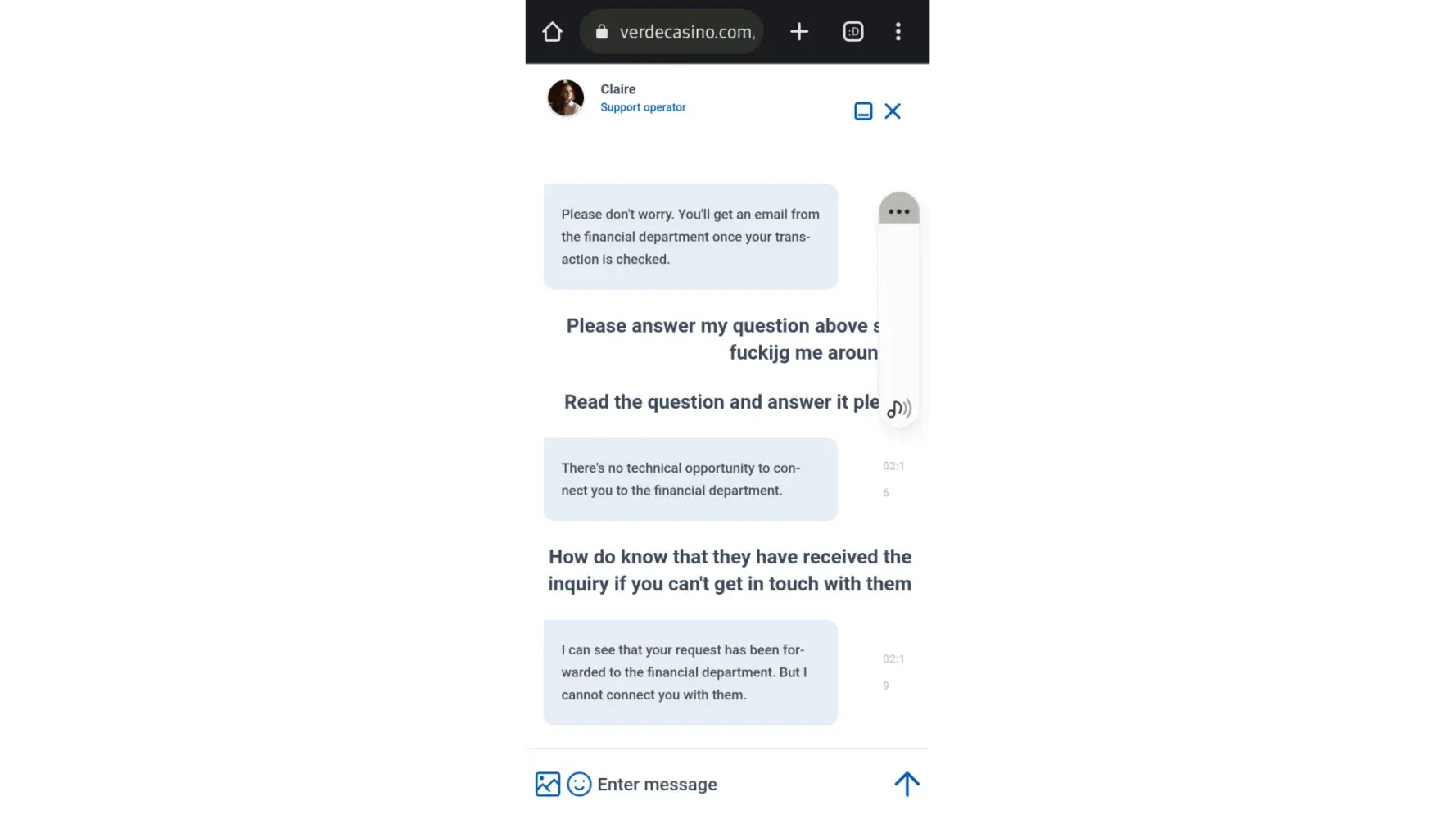 A all ready extend wait time's, in hopes that life as it does gets in the way and we stop pursuing it or with the frustration the victim eventually moves on or deems the hassle just not worth it and let's it go... Both outcomes verde keep the money. Ive had dentical scripted answers nearly word for word from multiple agents on different days, as well as complety contradicting information all which fall apart in same moments of given actual facts, meaning the won't pass me on to financial department won't give me a email adress some agent tho don't even know where the money is.. They also flat out ignore and refuse to answer important questions that would (if my money was legitimately missing) immediately aid and asisy this issue. Won't even acknowledge some questions becuse in doing so they expose the truth... Some even shamefully hang up when it gets to hard others clamied they have answerd my question but cannot answer how or which question they answerd? Most just hang up on me.. Ive been told my money is lost! Ive been told they don't know who has it who they gave it to or why its late and in the next breath they say they have emailed corresponding department and to wait for the recipt (so they do know whos got it or not?;) have admitted the corresponding department