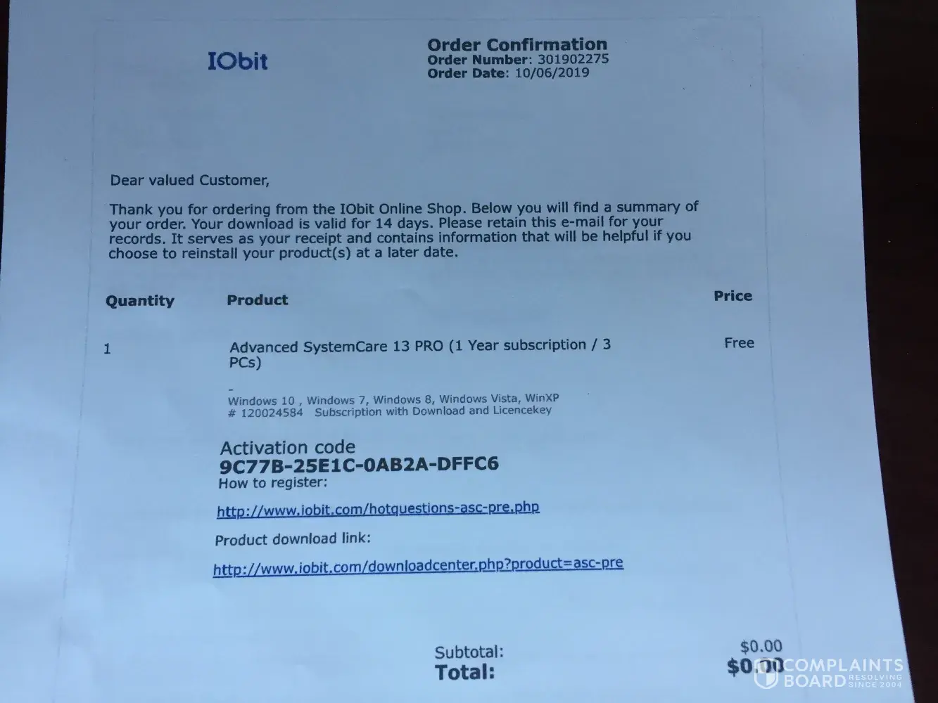 i downloaded adv. SYS. Care as shown on the attached photo. Clearly standing out is the 1 year subscription for 3 PCs "Free". in smaller letters it says "Your download is valid for 14 days." I read this as meaning I had 14 days to complete the download of the product. Not so, it did expire in about 14 days and tried to auto-bill me for the usual fee which I cancelled. THEN I uninstalled the Pro version and downloaded iobit's free version. NOW, even the free version says it is "expired." I've spent a lot of time installing, and reinstalling ASC to try to get it to do what I thought it should do. I've happily used Iobit for years, but now I think I might have to find another product. I don't like being manipulated. When a company has a good product, they don't need to lower themselves to be deceptive.