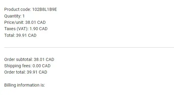 Order General Total: 39.91 CAD see the attachment