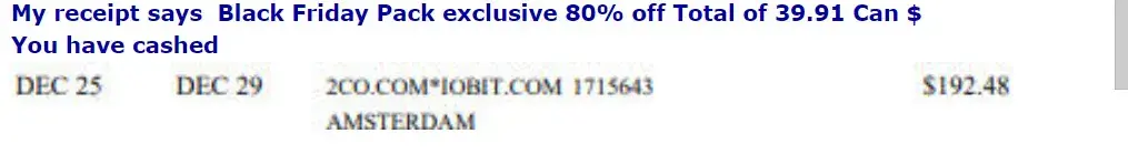 then on 29 Dec Iobit cashed 192.48 from my account for the same product without my authority. see attachment.,. I have written 4-5 times complaining without ant=y outcome.
