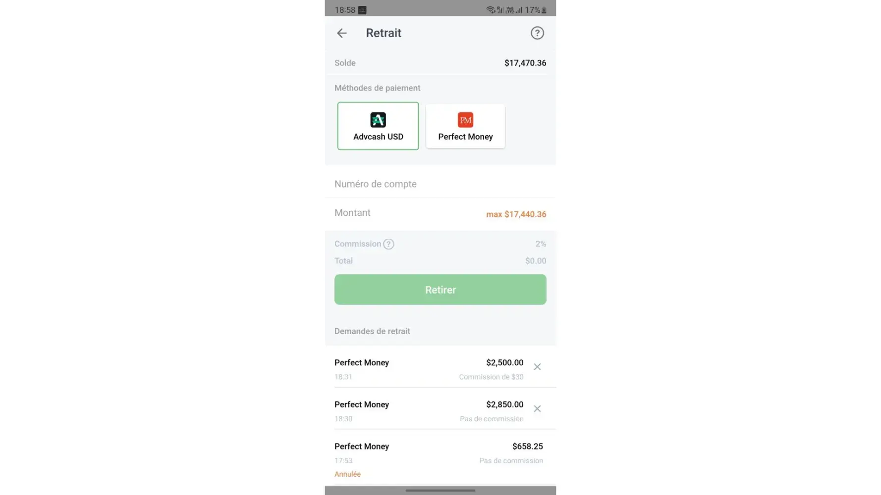 Unable to withdraw the amount in iq option