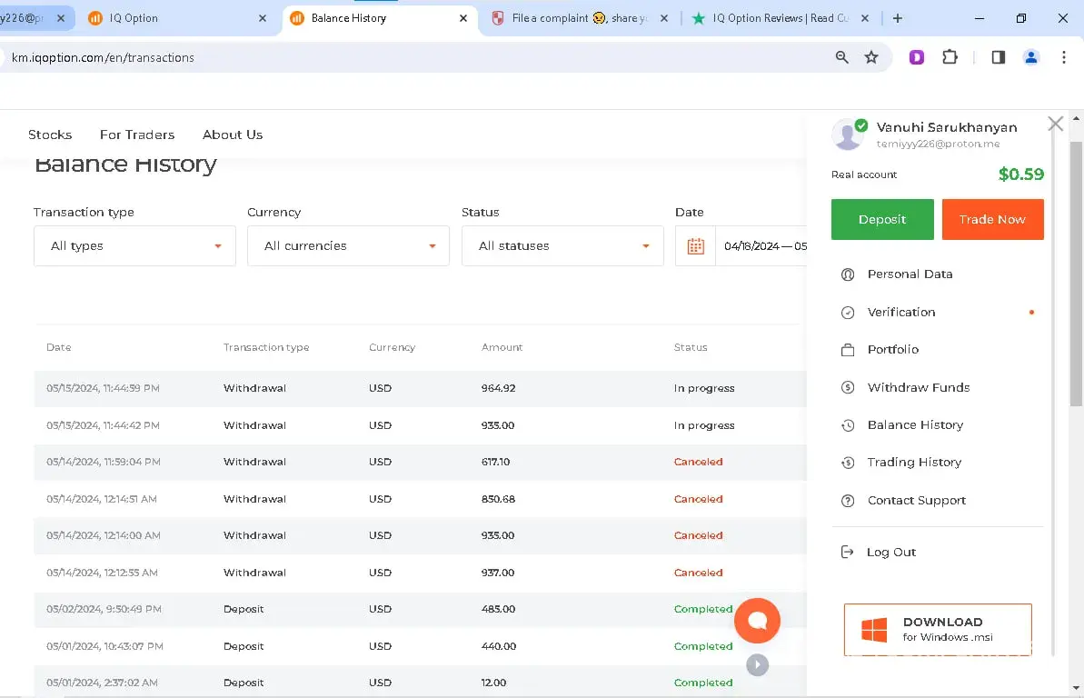 iq option has not withdrawn money for 2 months, they have not responded to emails, some kind of verification has been going on for 2 months. they don't withdraw $1085