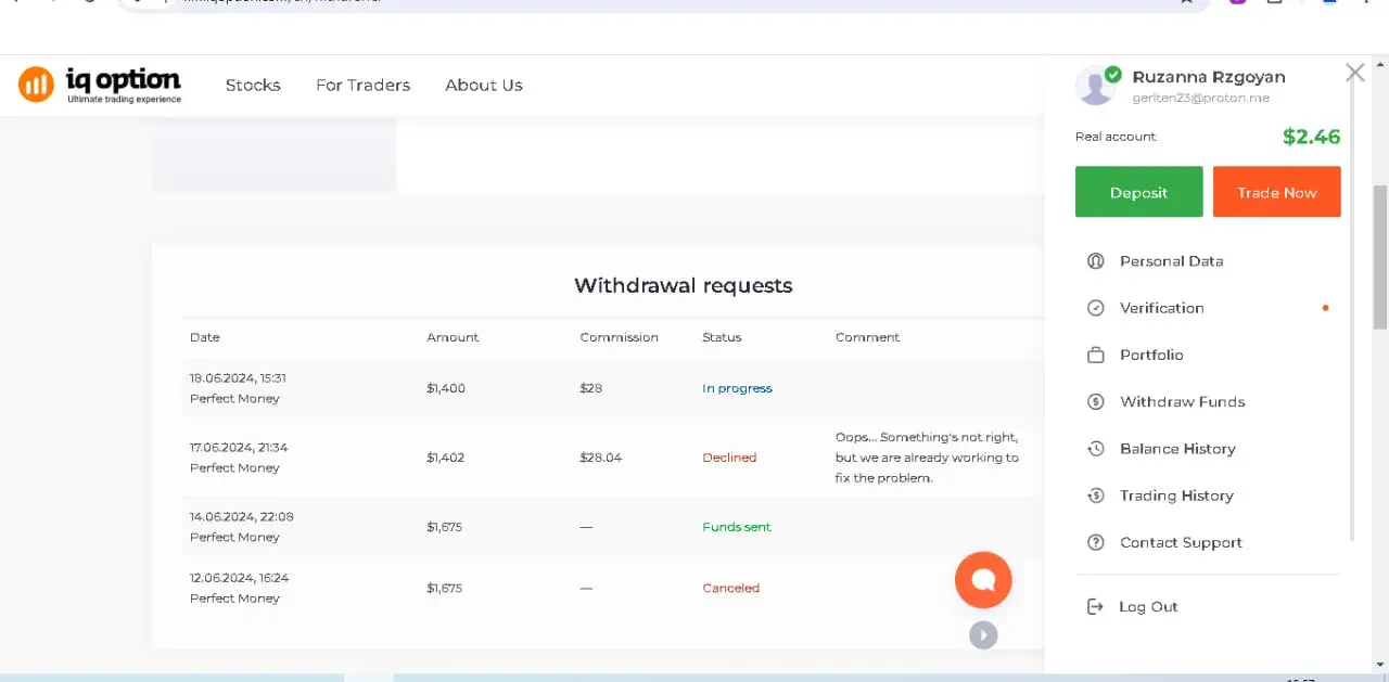 IQ option reset the transactions on my account, stole $460, I traded honestly, I am attaching screenshots of the transactions. Please help me return my money my bets almost all closed in plus, but the next day I logged into my account and saw that the best that closed in plus with winnings were calculated at zero. The result was reset. And the best that closed at a loss, THEY WERE LEFT UNLESS-LOSSING. IQ option scam office