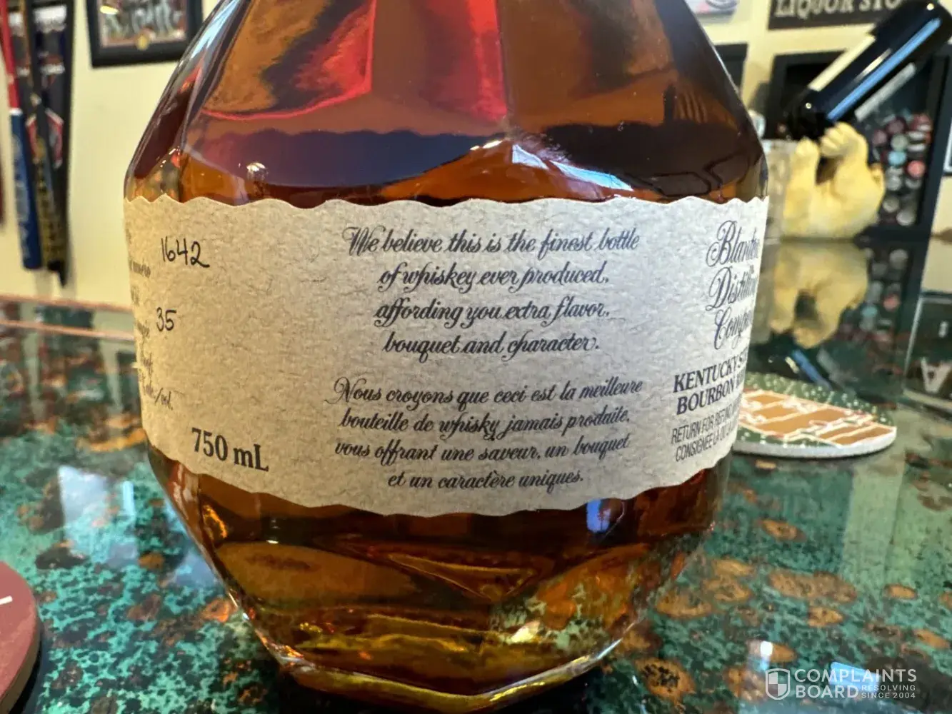 I am the original poster. Had to create a new account since the website doesn’t seem to recognize the account I created when I added the post above. I was able to get in touch with the store after searching for them on google maps. There were google reviews associated with that google maps result and one of the reviews had a reply from the store with a 619 area code (San Diego) number to call. Store was very responsive to being contacted and very cooperative with resolving this. They, like I, couldn’t figure out why the label on the bottle wasn’t a match to other bottles of this product and had sent me a return label offering either a full refund or a zero cost exchange for a bottle that has the label one normally sees on this Blanton’s product. The rep later found something that solved the mystery as to why the labels didn’t match the typical bottle though. Turns out this bottle has a bilingual set of labels on it. All the wording on the bottle is printed in both English and French. It was meant for sale in Canada. Said he’s not sure how they ended up with it but he was still happy to exchange it. He also sent a link to a Reddit post about the labels. Seems they were common in Quebec and other eastern parts of Canada as people replying to the post mentioned seeing them in stores in those areas. I’ve attached close up pics of the labels so you can see the two languages. In the process of going through all of this I informed the person I was dealing with that there were lots of complaints about people not being able to reach the store when they had an issue. Told him how the toll free 855 number associated with the store rings once and then gives a fast busy signal. He indicated they were not aware of the issue but tried for himself and acknowledged that indeed it was not functioning and would get it addressed asap. All in all once they get the phone issue addressed I wouldn’t hesitate to recommend them as long as you are okay with paying the incredible mark up on the always hard to find Blanton’s.