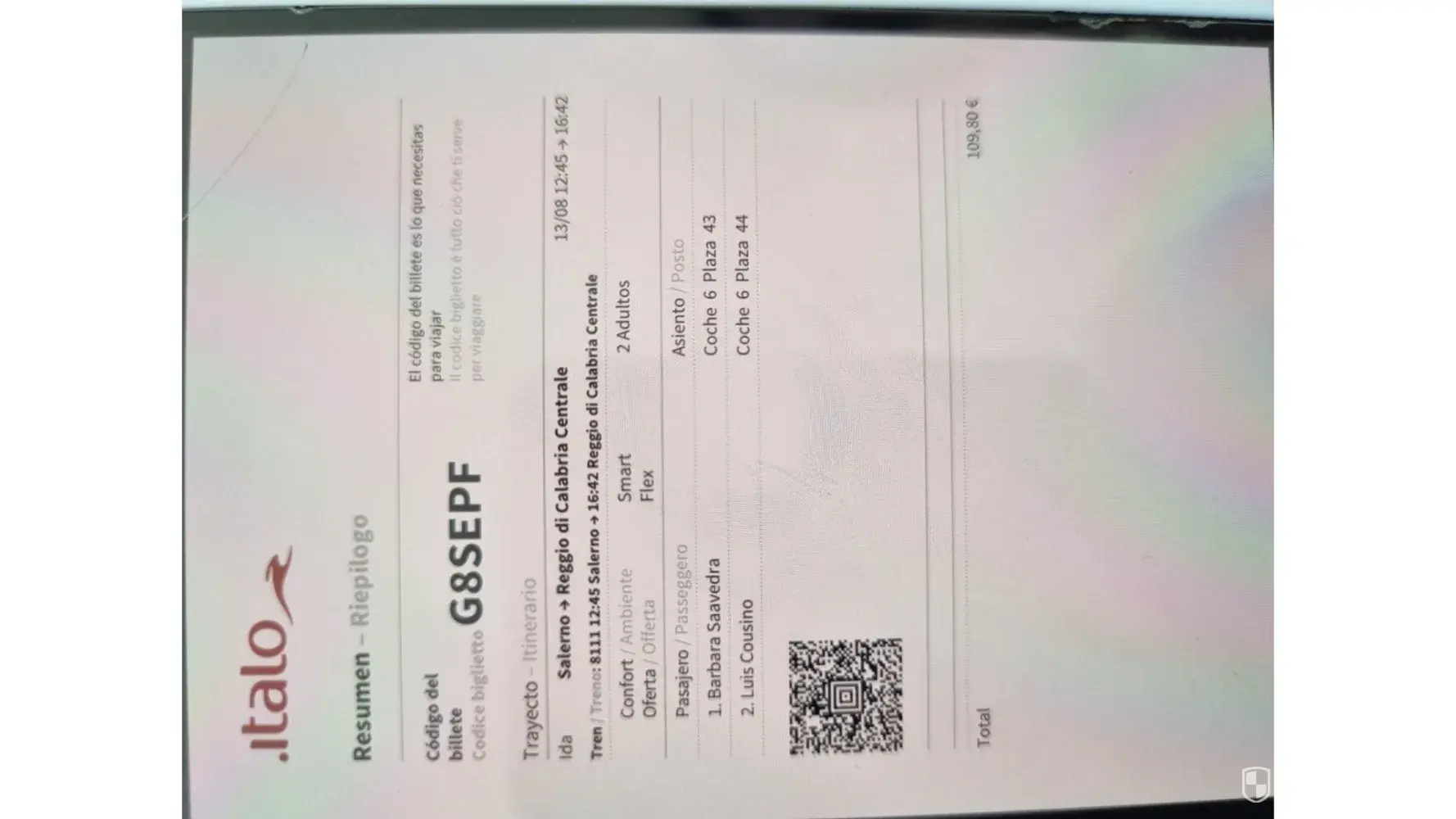 I travelled with my husband and 4 children on the 29th of July 2022 from Venice to Rome Termini. I had booked the tickets four months in advance and had been looking forward immensely. My daughter and I have a disability, and it was important to us that we were able to sit down. The tickets we had been given said we needed to sit on coach 4, seats 25, 26, 27, 29,30, and 31. (Bit these were the wrong seats!)
