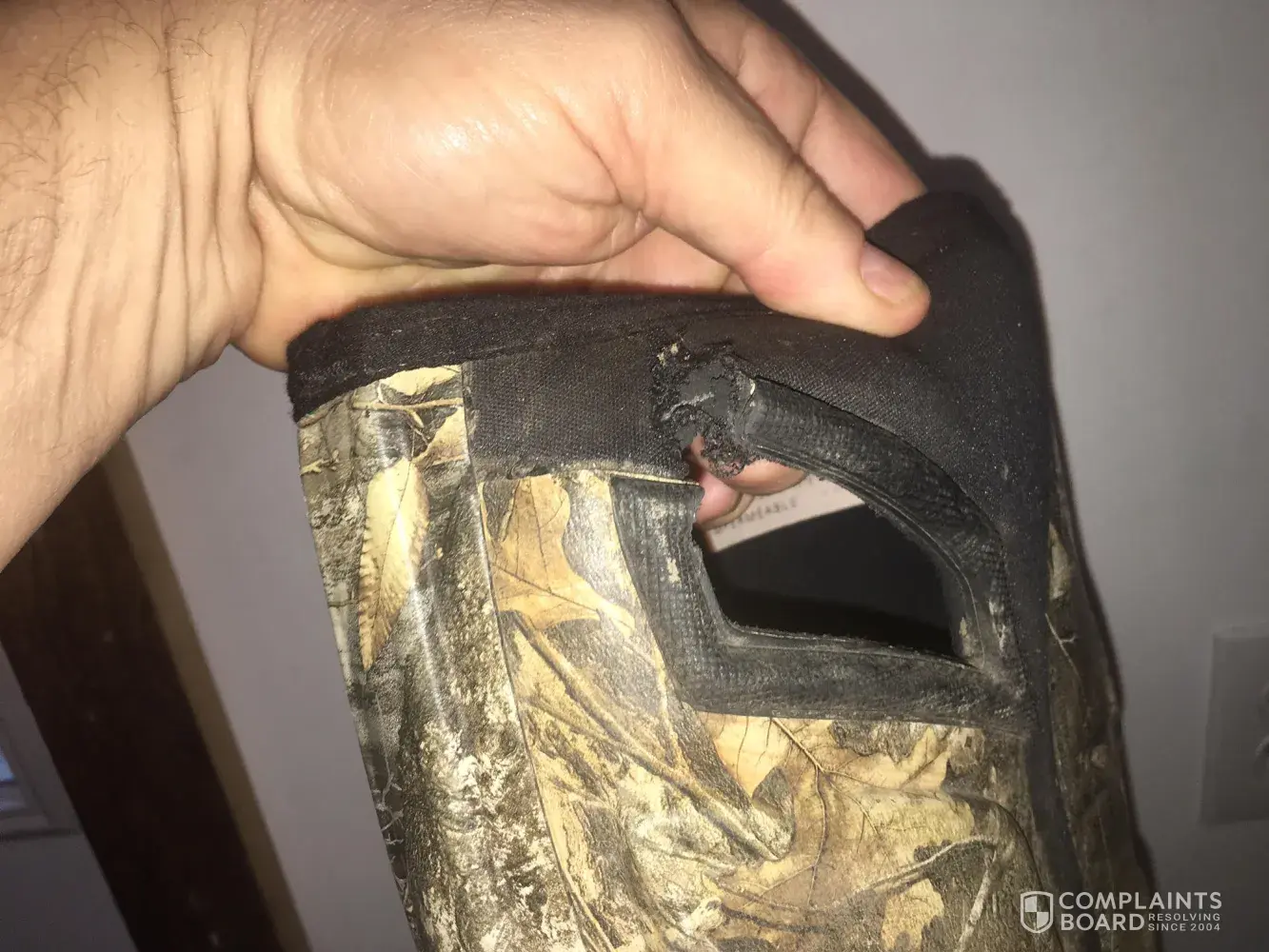 Bought a pair of Itasca waterproof hunting boots at Sporting goods wear house camo, Eagle style, from day one walking in the wet field they were soaked, feet wet, I worn them about a dozen times mostly on dry ground.. but today in the yard after a rain they wet also my feet.. I bought them in good faith that they we're a quality boot.. the light weight made for great walking.. but I'm so disappointed. quality control must know the on going problem.. I'll send the boots back for inspection if necessary.. please inform me of your decision.. so much appreciated..