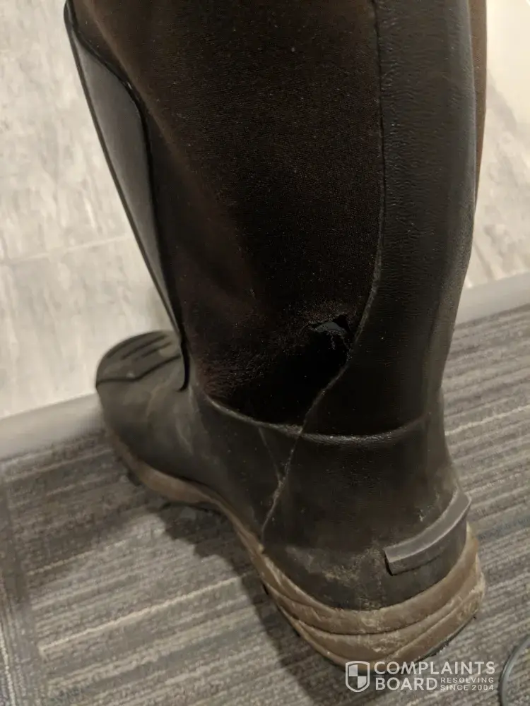 Hi my name's Gabe Shrauger. I am an avid hunter fisherman and I am a land surveyor by trade. I bought a pair of your Itasca knee high waterproof boots size 13 mens in December of 2020. I wear the boots occasionally when in shallow water. Today I noticed there is a rip near my ankle. It didn't not get caught on anything or cut by anything. They are no longer waterproof. I have pictures of the rip I can send. I really like the boots and was wondering if I could get sent a new pair. Thanks for your time. My email is [protected]@gmail.com. Phone number is [protected].