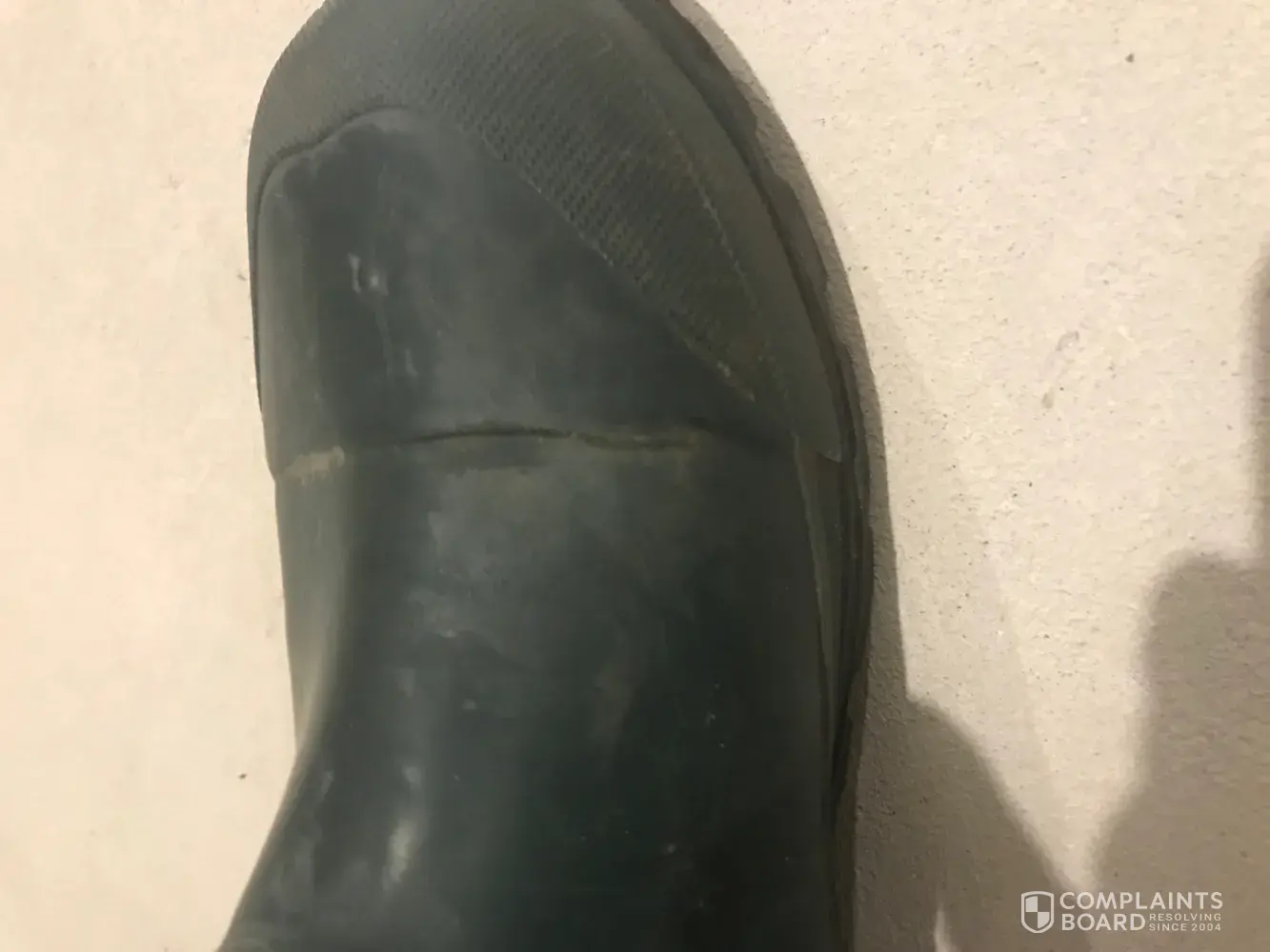 To whom it may concern: I bought a pair of these boots in November 2020 and the rubber on both boots cracked and split open on the top and sides of each toe when I bent over to tie my kids boots 02/14/2021. It's like the rubber is dry rotted and cracking, making these boots no longer waterproof or usable for what I need. I have pictures however I'm unable...
