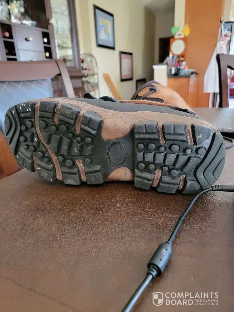 Problem is that rubber soles are separating from boot on both boots.pictures upon request.
