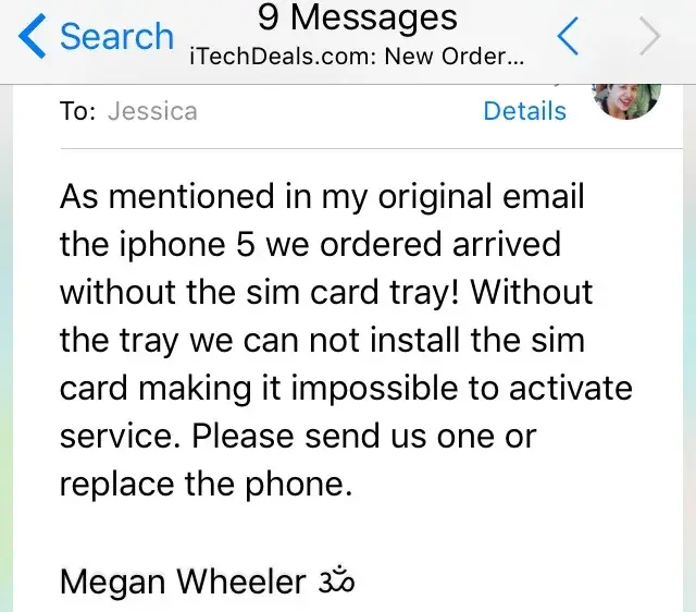 Ordered iphone5. It arrived. Great condition. Except it's missing the SIM card tray - making it impossible to install SIM card thus we can not transfer service to it! It's basically a glorified $90 ipod at this point. I emailed them. Got an auto response. They emailed requesting a picture & 24 hours. I sent picture and waited 4 days! Emailed them again and they asked me to clairfy the problem. Wheich I did AGAIN. Been over a week and still no sign of resolve. I am happy to remove this complaint once issue is resolved!