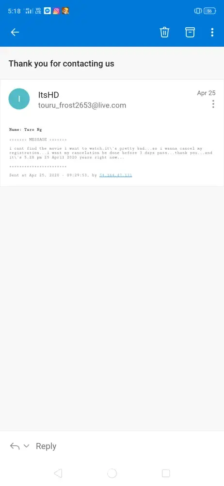 pls cancel my registeration! touru_frost2653@live.com! cant edit my account details?what a joked ! no reply from itshd.com?i sent an email to u guys and it's reply to me the same msg i've sent?