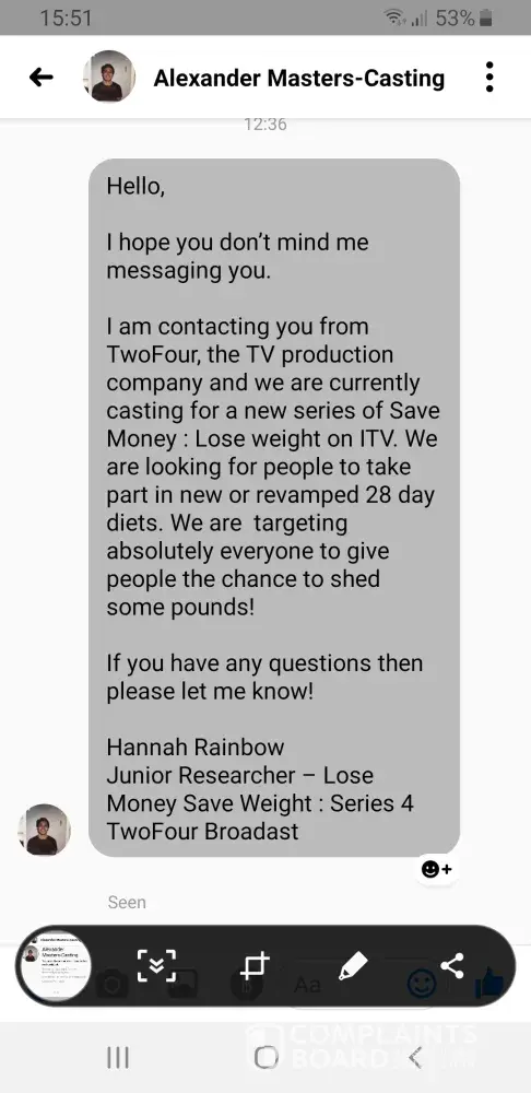 Earlier today I received a message from someone claiming to be a recruiter for the next series of Save Money, Lose Weight.