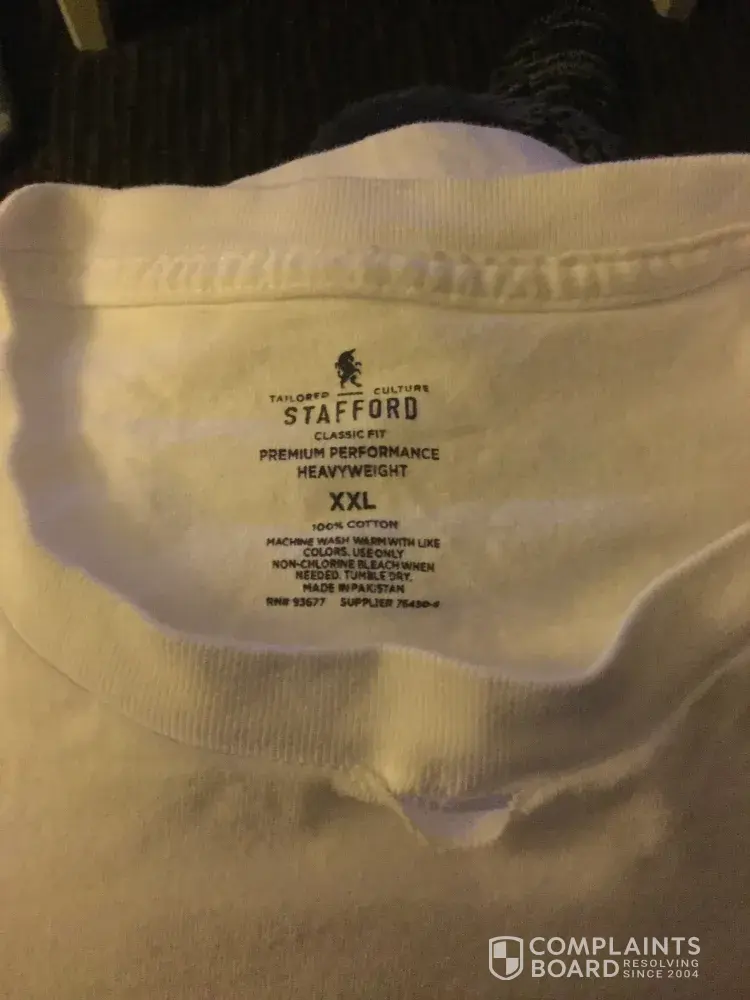 After 2 washings my husband's t-shirts are coming apart. I purchased these 2 weeks ago. What happened to the quality of these undershirts? They are quite expensive and used to last. To whom do I direct this issue? Can contact I do for Stafford be provided?