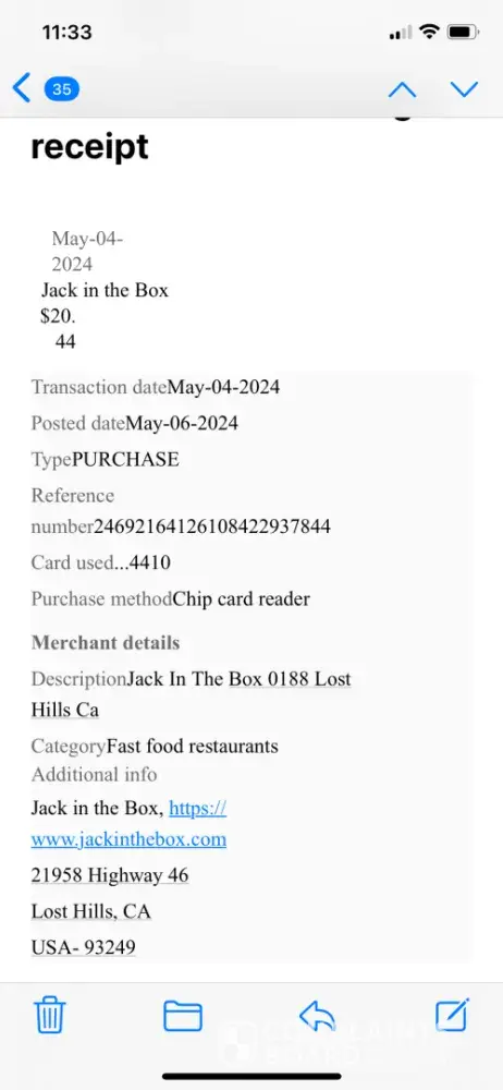 I got an email stating that I had ordered something this morning from a Jack in the Box in CA. I live in TX. Can this please be refunded? I have removed my cc.