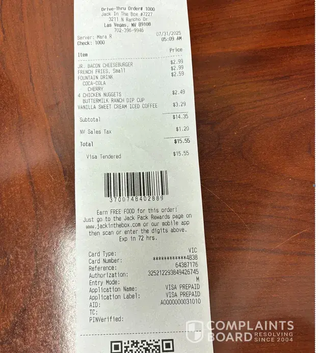 Read full complaintIs Jack In The Box Legit?