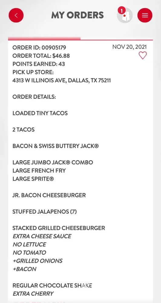 Jack In The Box Food Delivery Order