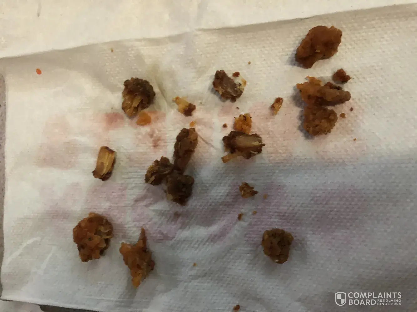 Yesterday I went to get popcorn chicken and I have dried up crusty crumbles the little crumbs from the chicken in there they don't even edible there was two chicken nuggets in there and three other things then I'm guessing was the actual popcorn chicken and I took photos of the Ridiculousness that they know that they served and no one would want that I'm sure they wouldn't!