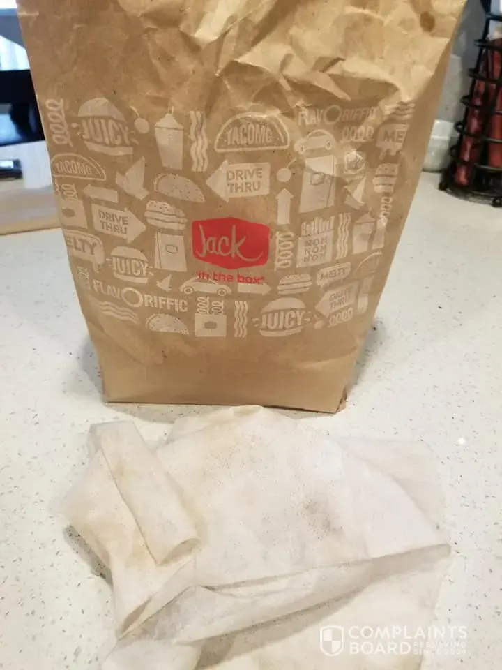 Jack In The Box dirty towels on counter or restaurant which ended up in my food bag.