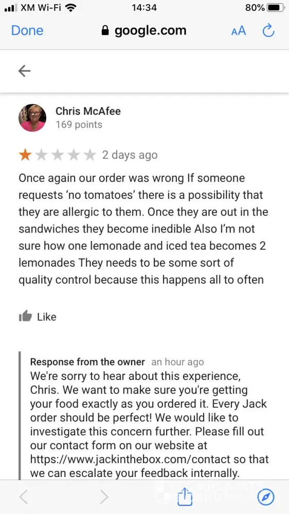 Jack In The Box earns a 1.3-star rating from 5 reviews and 899 complaints, showing that the majority of fast food diners are dissatisfied with their meals.