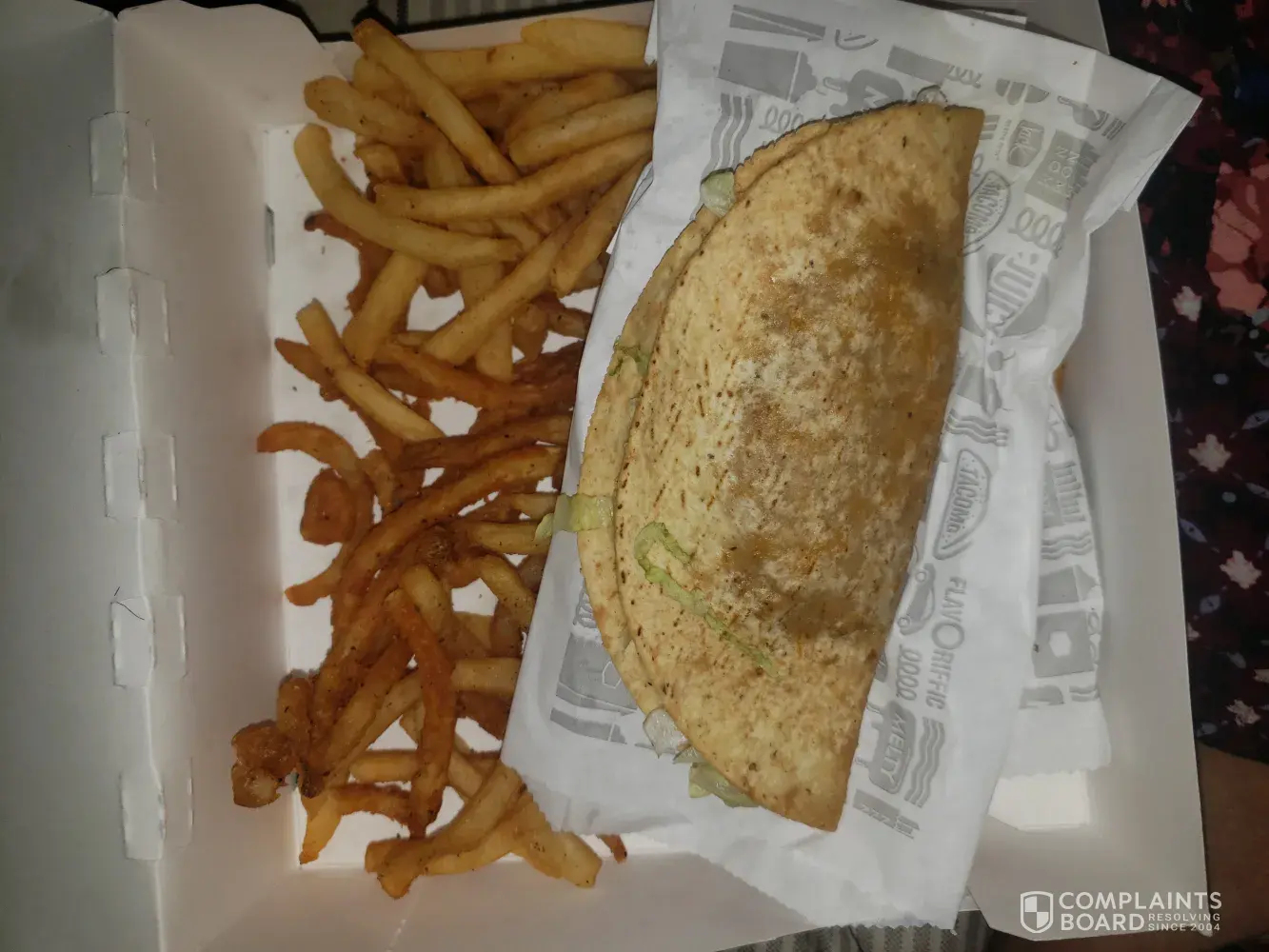 When I received my order the fries and chicken strips were cold.. Not extra crispy or even hot.. What I received were the left over strips and curly fries from the lunch rush. I did not have time to return to complain and had to go without something to eat due to the poor quality of the food I was served at this restaurant.