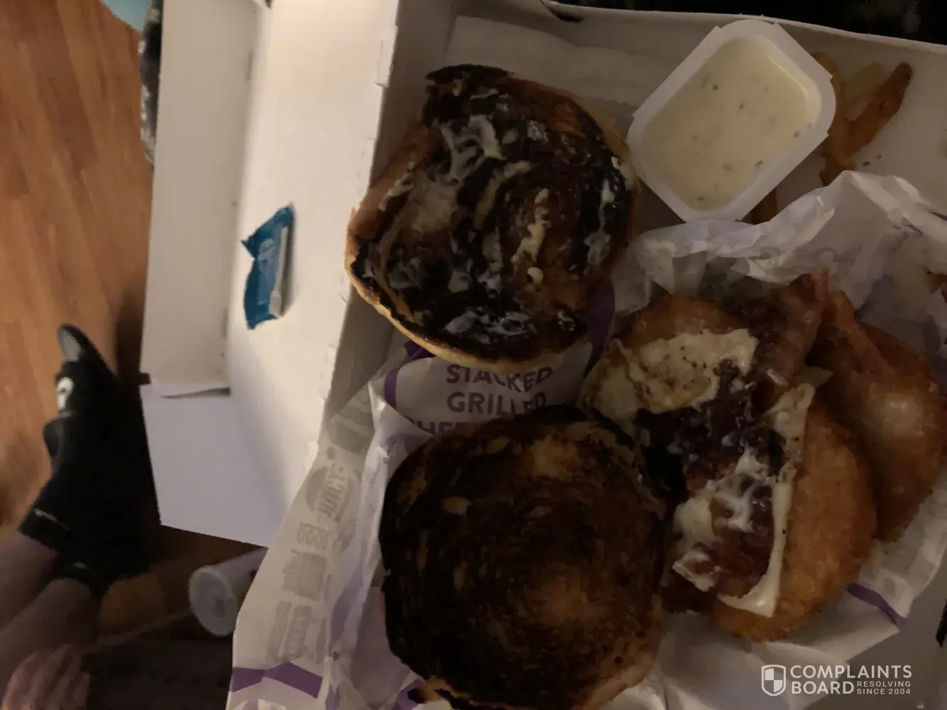 I order the sourdough sandwich only. No Bacon no nothing else. When i drove to the window, the order taker charge me $7.00 for the burger and when I requested a receipt, she said that the register was out of paper. She gave me my change and drove off. Keep in mind that i'm Only two minutes from my hotel. When i took it out to the bag, i found my burger burnt and cold lots of mayo and was dripping all over the place. I became so upset that i looked up the phone number for that Jack and box to let the manager know what happened. The person that answer the phone said that the manager had left for the day and i needed bring my receipt and the burger back to get it replaced and that i had to bring it back To show them what the problem was.