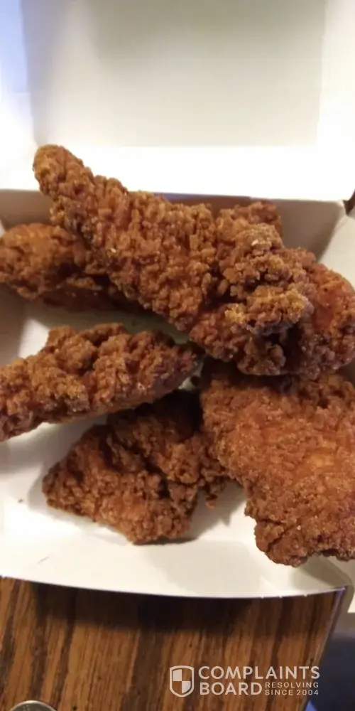 I love chicken tenders so of course I tried your spicy chicken tenders. I've had them many times probably three times a week on my lunch break. Last week I went through the drive-thru. When I get back to work to sit down to eat my chicken tenders were still raw inside. I did not get to eat them for fear of getting sick. I could not take them back I was already at work. I would like a refund for that day I believe it's $5.38