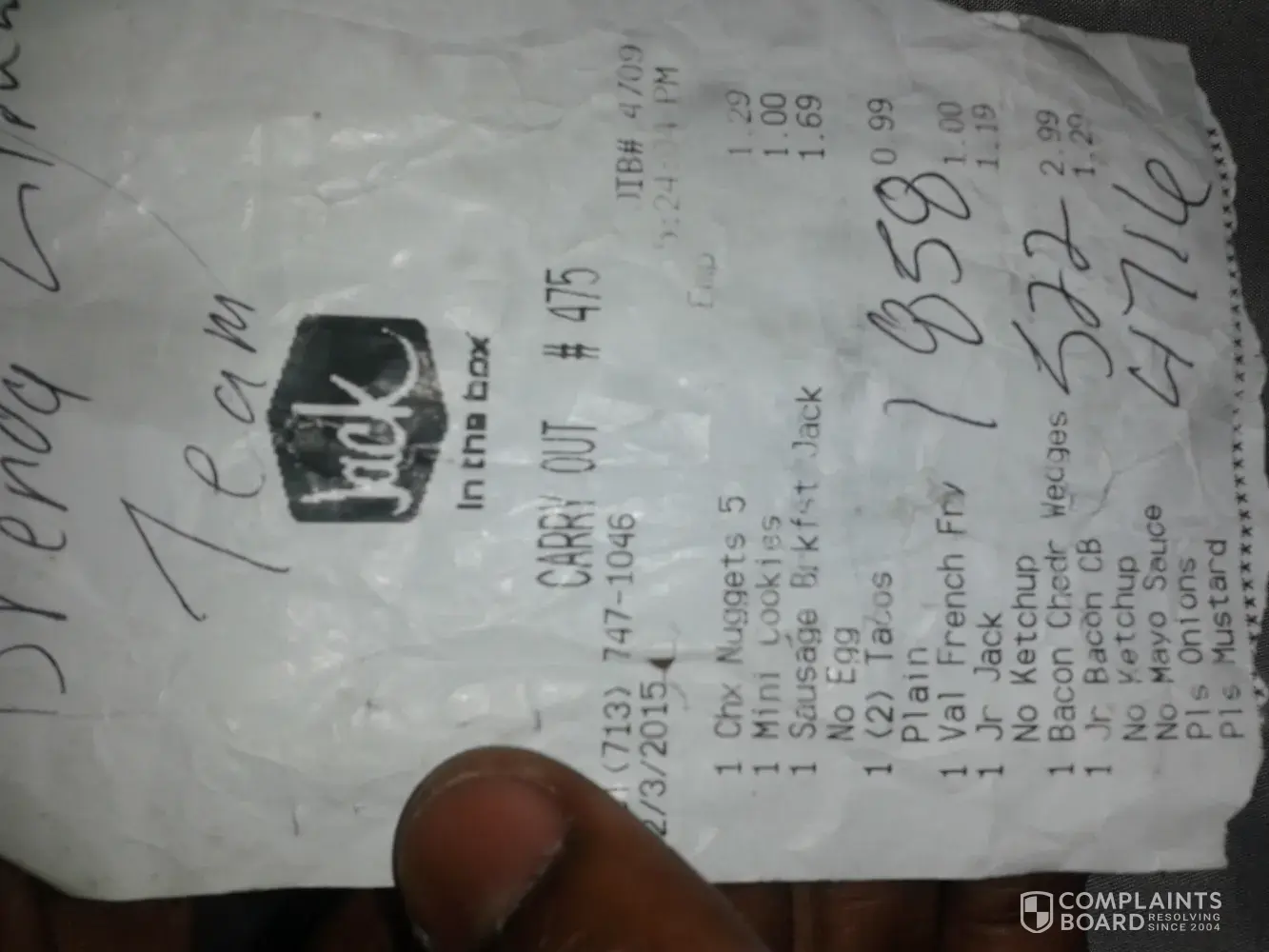 There may end up being two posts on this, I commented and it is like it just vanished when I submitted. Contact Jack in the box. There should be a phone number on the receipt or a .com address. This will be on store video and they can deal with it.