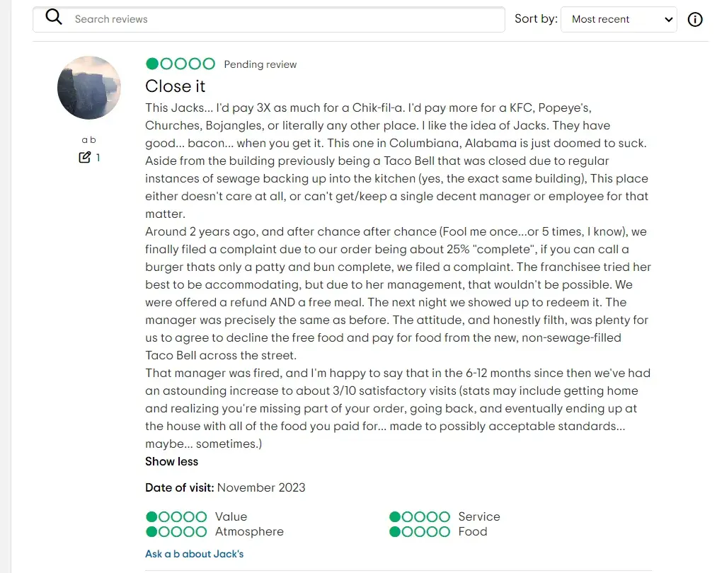 Read full complaintAbout a jacks I work at