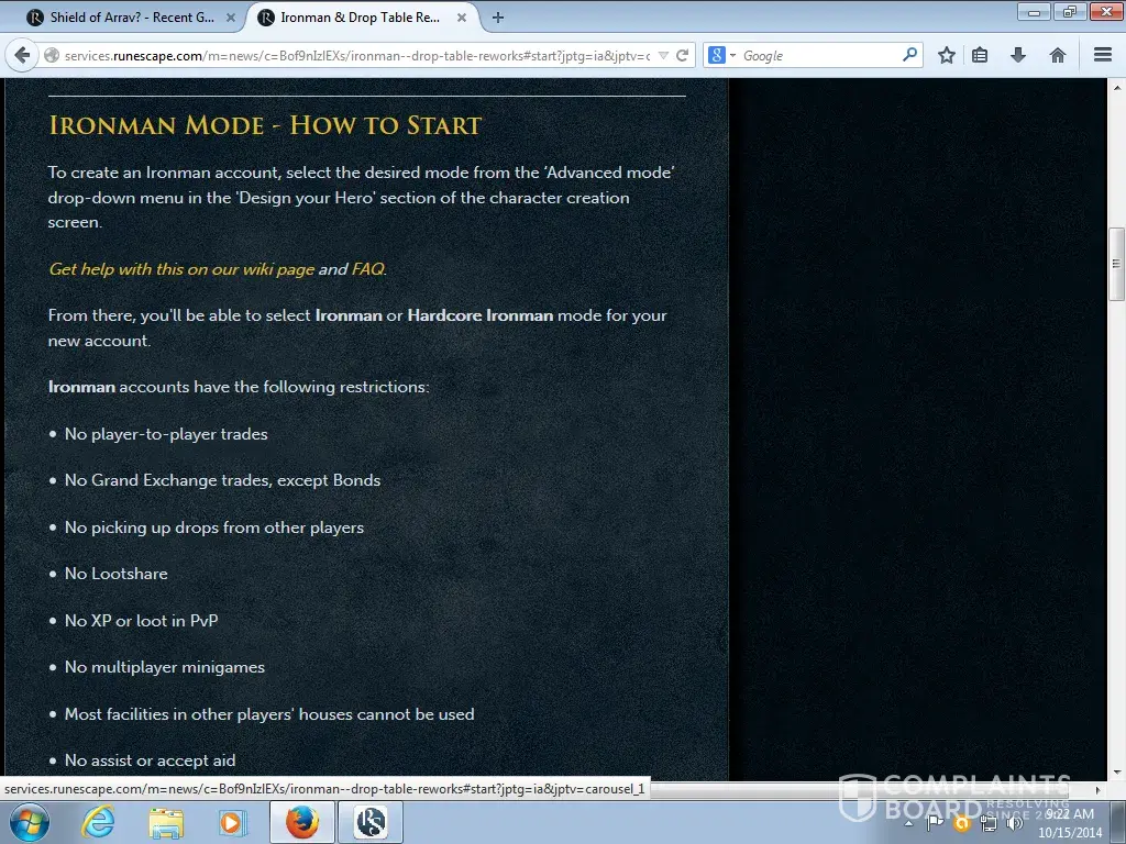 Jagex recently came out with a game play mode called Ironman on their game Runescape. The idea behind Ironman is that there would be no trading what-so-ever and the player would have to do all of their own work. Again, the very first thing that you see listed on their page about the Ironman mode is a statement that says that there will be no trading. When you purchase the game to play in the Ironman mode and start on your way, you soon discover that they lied to you and you still have to team up with another player and trade items with them to complete two different quests. Those quests are parts of huge story lines that you can not continue in without them and they also grant access to areas and abilities to obtain and use items in the game that you can not do without those quests.