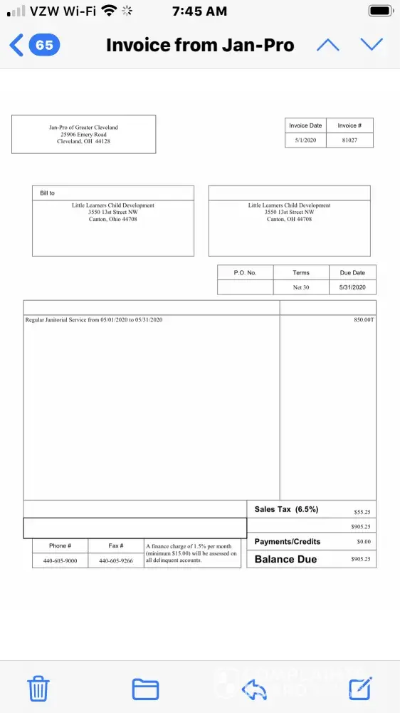 Needless to say with all the fee sand royalties i was making somewhere around $ 112. down from $700 and still had to pay off the previous franchisees fees. In June of 2020 JanPro sent me a payment for $ 35.00 needless to say all I could do is laugh. December of 2020 they sent me a payment for $00.00 that was the last straw. They don't replace accounts in a timely manner and they don't care about franchisees but they do expect you to service accounts your not getting paid for. SLAVE LABOR. i refuse to clean anyone's building for peanuts while someone else gets rich.