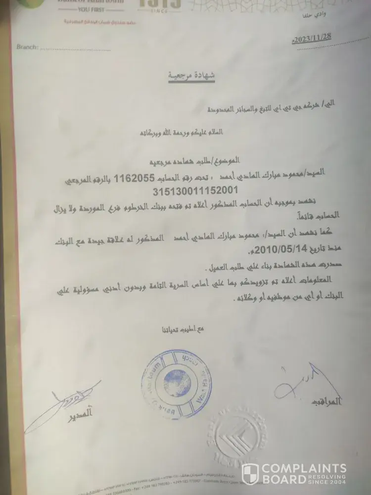Hello, I am Mahmoud Mubarak. I have filed many complaints against the company in Sudan for two years and I have never received my rights to the goods.