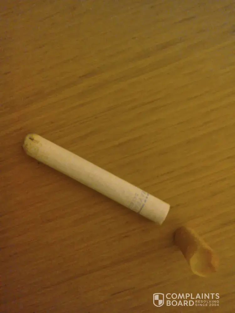 After finding my cigarettes would not smoke in the normal fashion I discovered a inch long stick of wood in one. This is not acceptable with the price of your product being high I would exspect a much higher quality of product. Very disapointed to say the least. Im sure you will agree with me when I say this lets your product down and im sure this is not a isolated incident. Pls advise on you intended plan to resolve this situation. Many thanks. M thompson