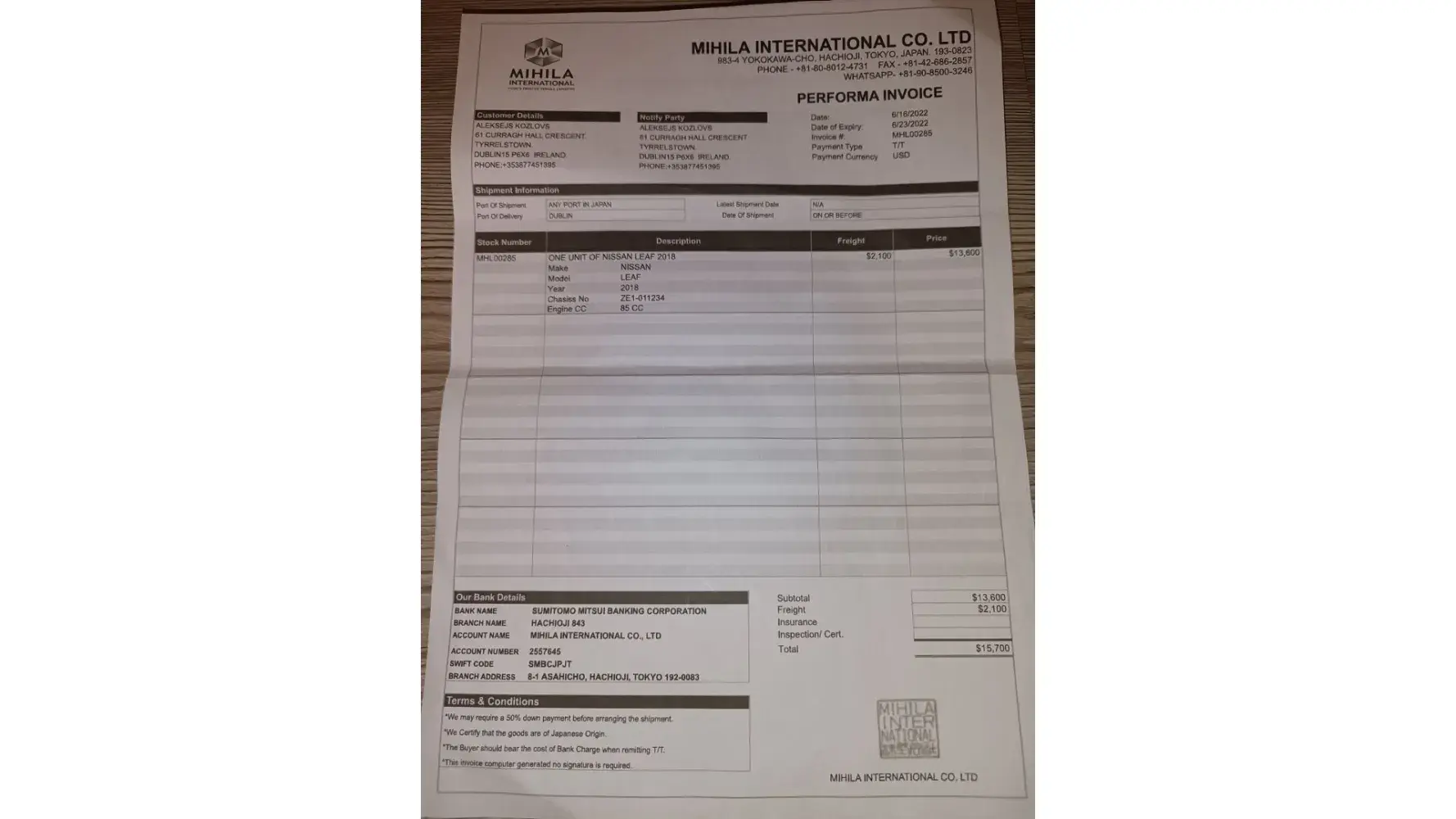 it seems this company is working with Japanese car trade to con people so please any one who is planning to buy a car from this website be warned that they are fraudulent.