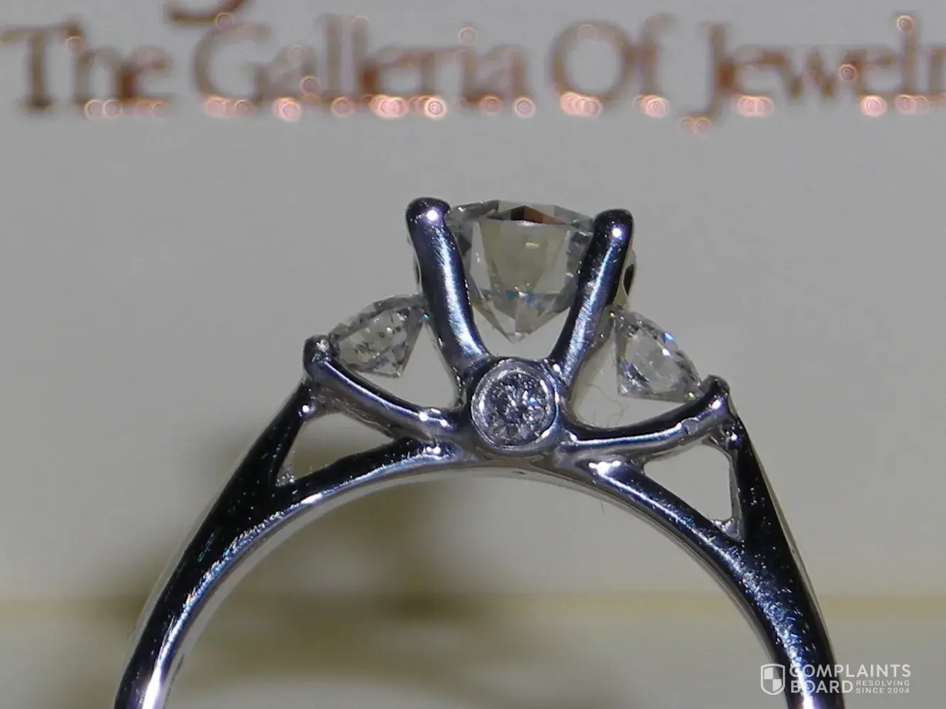 First call the 800 to register your complaint, that way you have the 1st word. 2nd find out who the district manager is. The managers are the stores are not going to be helpful at all. Call the district manager (after you call customer service, get the name of the person you talked too). 3rd email your story/complaint to everyone that you can think of to get some attention. We emailed the Responsible Jewelers Association, BBB, the CEO of Sterling, some other peeps at Sterling Inc that were higher ups. I kept sending the same email with to the same people (CEO, etc) until I got a repsonse. It only took a few days of the emails before someone at corporate contacted us. Then we had to bring the ring into the store so they could verify what we were complaining about. Do not leave the ring with them. They can take pictures. Tell them they only way you will br satisfied is with a refund. I am sure Jared's lost your trust and confidence to repair the ring. Get your money back and take your business else where. Do not settle, fight to get a refund. Go to the news stations if you have too. Good Luck.