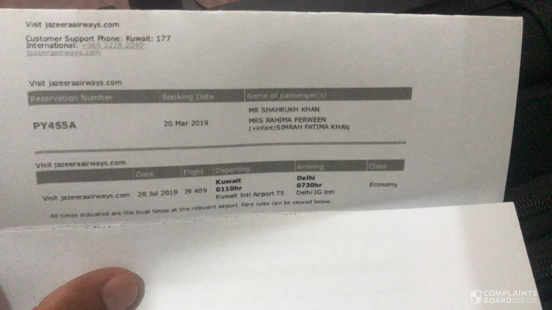 Hi I supposed to fly from kuwait to delhi on 28 july 19, by flight No. J9 409 PNR PY455A