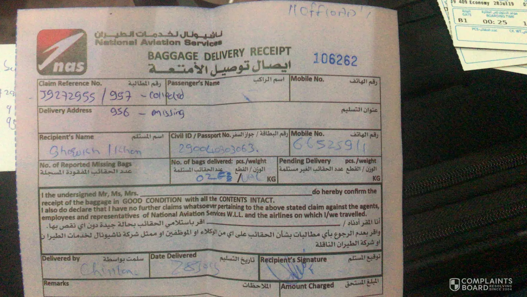 I have travelled from kuwait to delhi on 04-Aug-19 at Aljajazeera (J 409) flight. As i have not received my baggage( someone else baggage was there with my name tag), i have given multiple complaints, but no satisfactory response from your side.