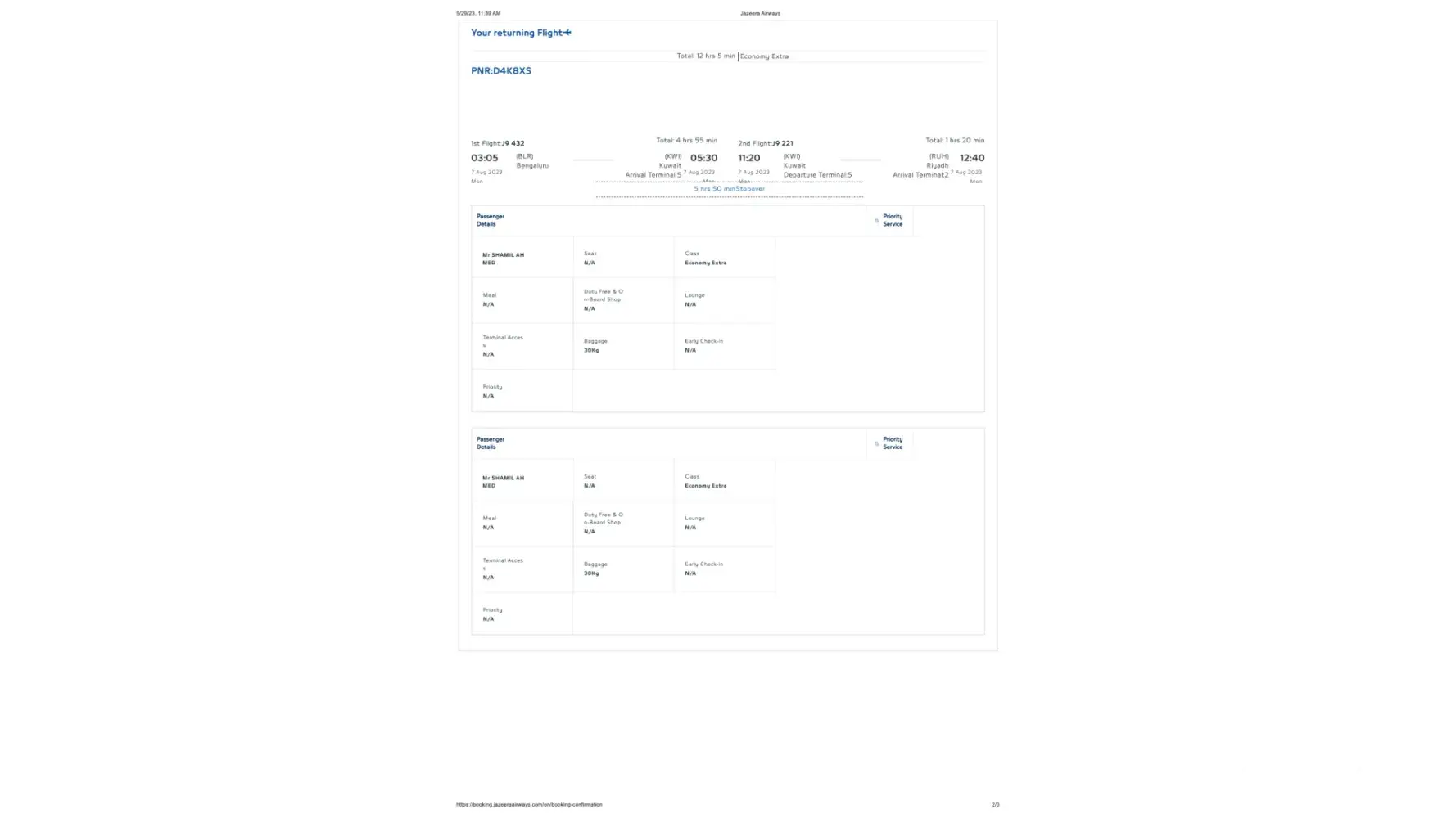 My next flight is supposed to be in an hour, somehow the flight is delayed five more hours, however no designated smoking area was available, no lunch was served. My experiment with Jazeera airways was awful, first and last time flying with Kuwaitis airlines