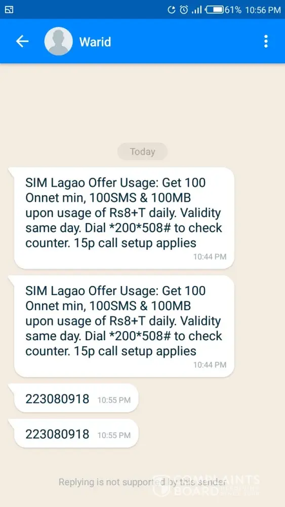 Last evening I received SMS from Jazz / Warid at my cell # [protected] :