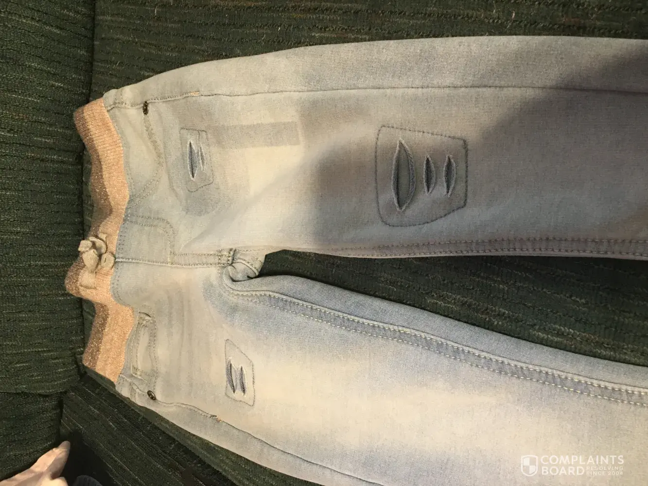 I purchased these before school starting and fell in love with the look! I purchased it for my daughter who will be 5 in January and paired it with the Arizona pink camo top with the lace on the sleeves. I am complaining about the pants. They are like the begging with the fake rips in them. The RN is 111052 and the supplier is 17216-3. The jeans had the stickers on them before purchase. After purchase I brought them home, removed the stickers (which left like a shadow) and washed them. That (shadow) is NOT coming off! Please help! The cost of these pants aren't the cheapest so I expected better than what I received.