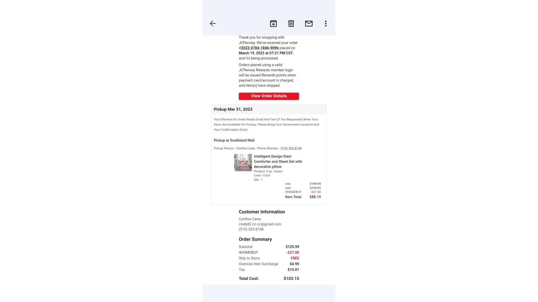 Desired outcome: Find the comforter so I can pick up @ Hayward store and provide a significant discount.Cancel the order and reorder the comforter, ship home free, and provide a significant discount.Cancel the order, refund the full total to the credit card