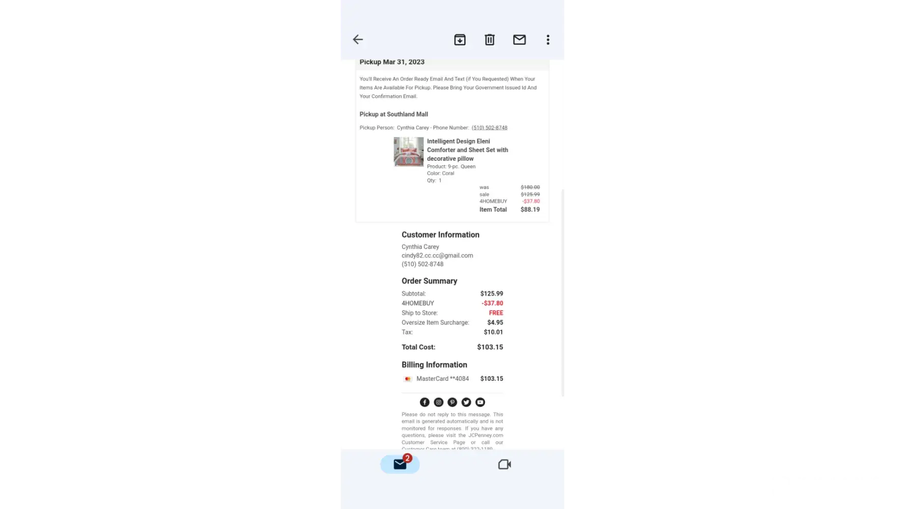 I am beyond disappointed that my online order is missing. I ordered a comforter online on 3/19. I received an email confirmation that it was delivered to JCPenney (Hayward) on 3/21 via UPS and would be ready for pickup on 3/31. I went to the store to pick it up on 3/31. Not only was it not there, but the customer service rep in the online pickup department also stated there were no orders under my name. She did not bother to call anyone in that shipping & receiving to look for the order. She provided me with the number to online customer service. I called while in the parking lot because I don't live nearby and I wanted to see if it would be possible to pick it up before I leave. The online rep called the store and claimed no one was answering. She stated she was going to send an email to the store manager about this. I explained I paid over $100 for this comforter. It's unacceptable that after 10 days it has not been processed by JCPenney shipping and receiving and it's missing. I requested the online customer service to cancel the order or reorder and resend it to my home or UPS pickup location. She explained emailing the manager was all she could do because she had no way to refund or reroute on her end. This is beyond disappointing. I have placed several orders with JCPenney in the last few weeks, spent hundreds, and had no issues. This is completely unacceptable and I expect JCPenney to rectify this situation immediately.