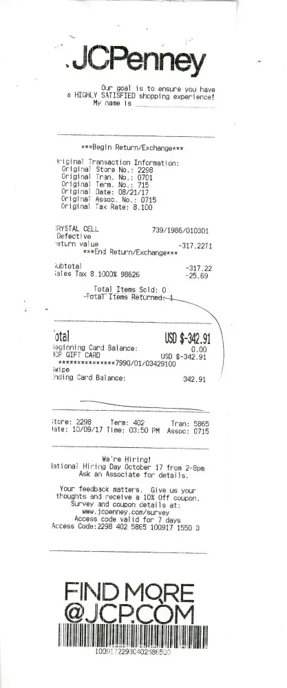 By the end of the conversation with Calvin, I was irate. Being a platinum card holder and having a JCPenney card since 1983, I couldn't believe the way I was being treated. I definitely didn't feel the "feel-good loyalty program" that was advertised.