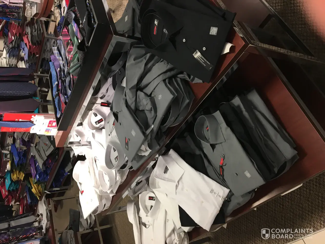Please see the attached photos of this dump. It appears no one has spent any time nor attention to the men’s section. The photos say enough. Looks like a tornado went through there! I used to spend a lot of money in this store as well as my father. These days there are no ties married with shirts and if there are whomever is doing the matching needs a new job!