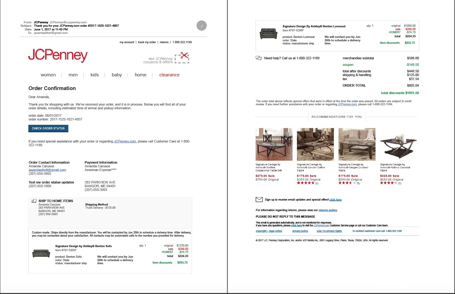 I placed an order on 7/28/2017 and received two big boxes when it was shipped. First box I opened had one item that I ordered and the rest were approx. $600 worth of Men's clothes that does not belong to me. I opened the 2nd box and it fulfilled what I had ordered. My address labels were on both boxes. With a heart, I felt it was appropriate to return it to JCP store so I made the trip to Sangertown Square on Friday, August 11, 2017. I'm very disappointed with the common courtesy- the person working at the register was basically puzzled on how/why I would receive all those items by a mistake and basically nodded his head, took the box and walked away. No words of saying thank you or appreciating anything I did. I could have kept the items in the box! I figured someone out there had to be waiting for their items that was lost! I was trying to teach my girls a lesson, have common courtesy and so forth.