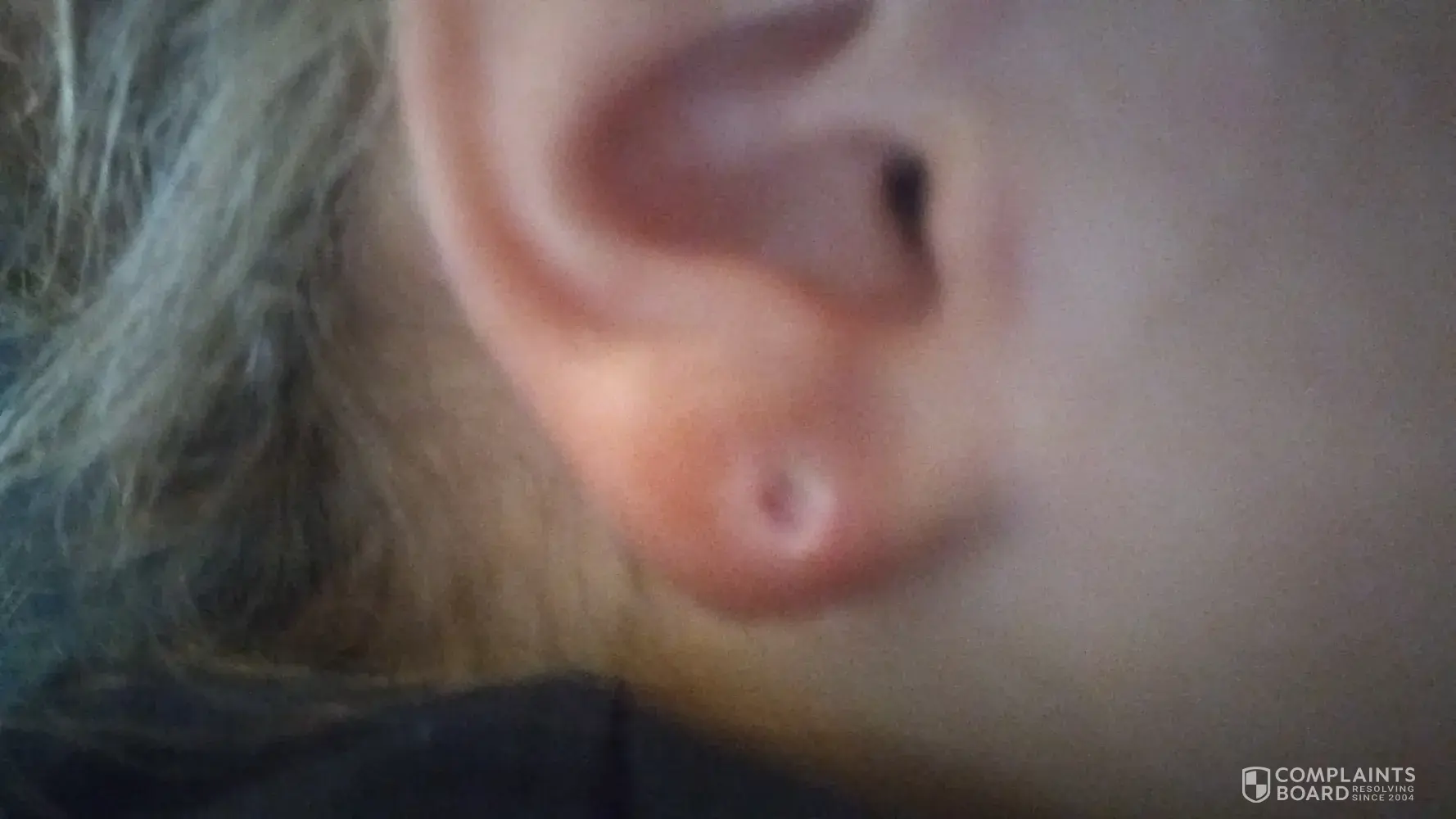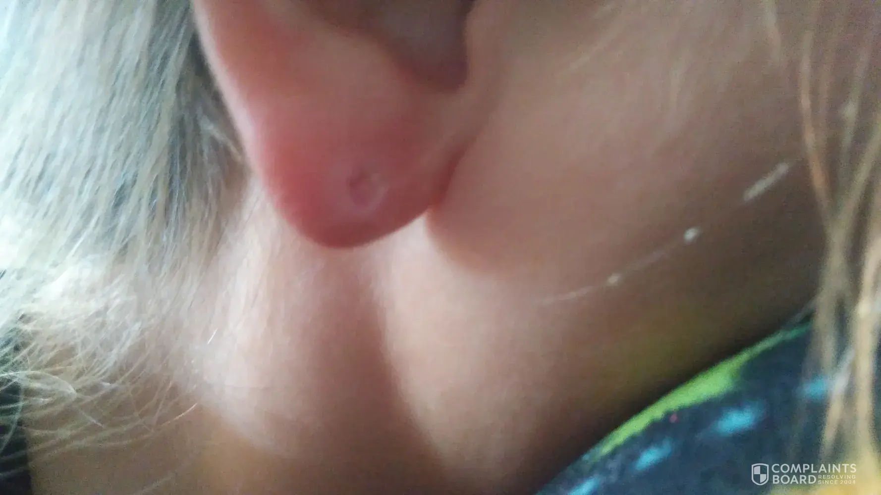 I bought my daughter new earrings that happened to be arizona brand. Two days after her wearing them i went to take them out and she now has a hole in her ear. Not just the earring hole, but the earring literally ate a hole in my 7 year olds ear. I am very disappointed in this product because not only is my child in pain, she will now have a permanent scar on her ear and can no longer wear earrings. I would appreciate a phone call of some sort asap or i will take this to the higher ups.